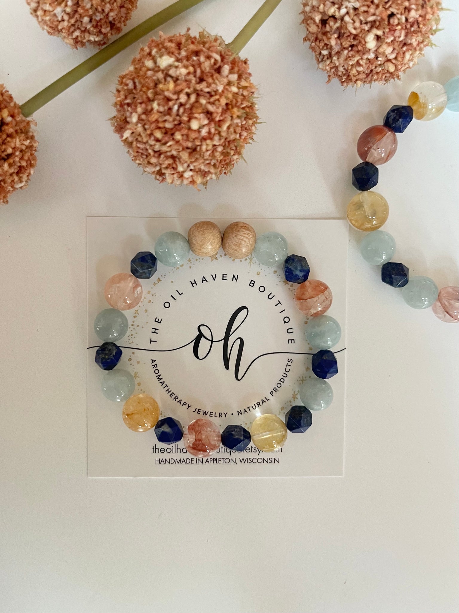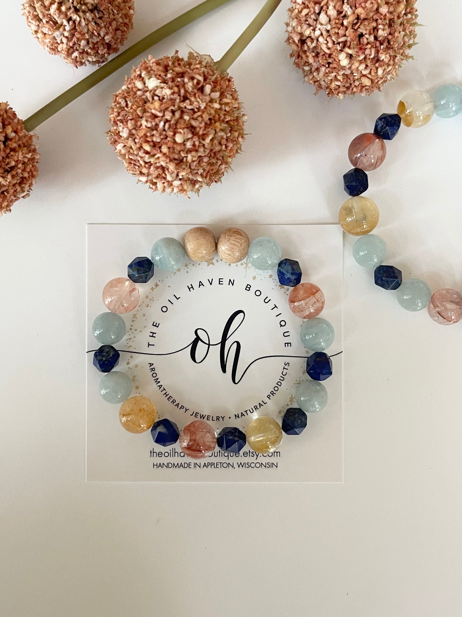 A little bit of everything! Fun gemstones and just a little wood to put your essential oils on!