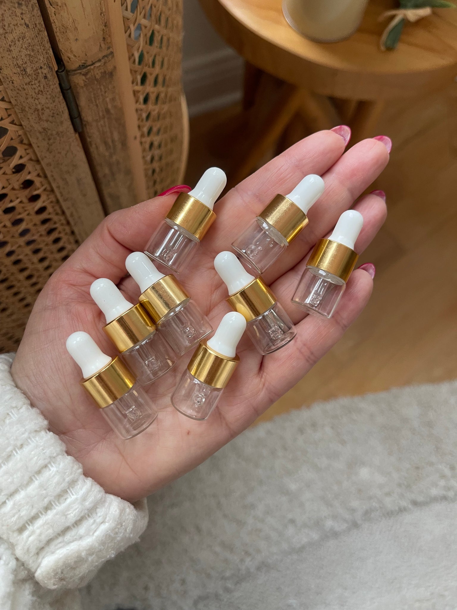 Perfect for travel or giving out samples! These 1 ml glass serum dropper bottles can hold 40 drops of essential oil. *This is an empty serum bottle.